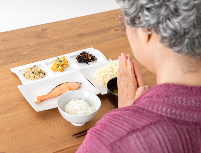 各利用者様やご家族様と話し合い、希望や嗜好、状態等を聞いた上で、医師や療養棟のスタッフと相談し、栄養管理(栄養スクリーニング→栄養アセスメント→栄養ケア計画の作成→栄養ケア実施→モニタリング→評価)を行なっています。生活機能の維持、改善を図り、健康寿命の延長とQOL(生活の質)の向上を目指します。